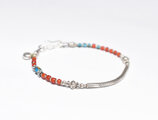 湾曲カレンシルバーと飴色&縞模様ターコイズブルーホワイトハーツを繋いだ華奢なブレスです。