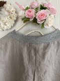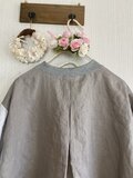 ・前見頃に薄グレーの刺繍地のダブルガーゼを使い、後見頃がリネンを使ったバイカラー仕立てです。