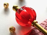 かんざし ほおずきの様な2トーンカラービーズ 赤 レッド 紅 鬼灯 ホオズキ 一本挿し 一本簪 ゴールド 春夏