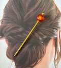 ほおずきの様な2トーンカラービーズでかんざしを作りました。