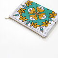 鮮やかなカンガを使用したマチ無しフラットポーチです。