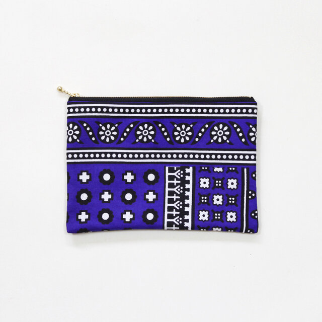 鮮やかなカンガを使用したマチ無しフラットポーチです。