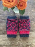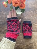 ハンドウォーマー*①大きなお花柄*ラムウール100%*ニット*手編み*冷えとり*ミトン*手袋*リストウォーマー*民族衣装*