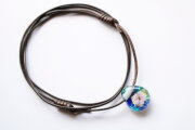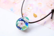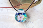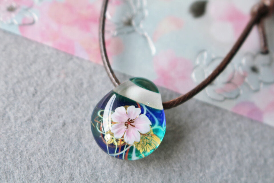 金箔を貼り付けた水色×青の地に、桜を咲かせたとっても小さなペンダントです。
