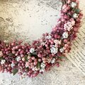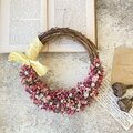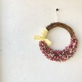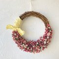 ピンクの濃淡がリースに奥行きを出し、菜の花色のリネンリボンでより春の暖かさや柔らかさをプラスしました。