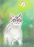 ヒラヒラと舞う蝶々をながめる可愛い猫さん