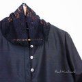 ワッシャーブラックラッセルレース襟クシュブラウス*卒園 卒業 入学式 冠婚葬祭 結婚式 フォーマル