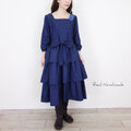 [予約販売] 柔らかデニムスクエアフリルワンピース****デニムフラワーブローチ付き