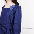 **コサージュピンで取り外し可能なデニムフラワーブローチ付きです**