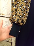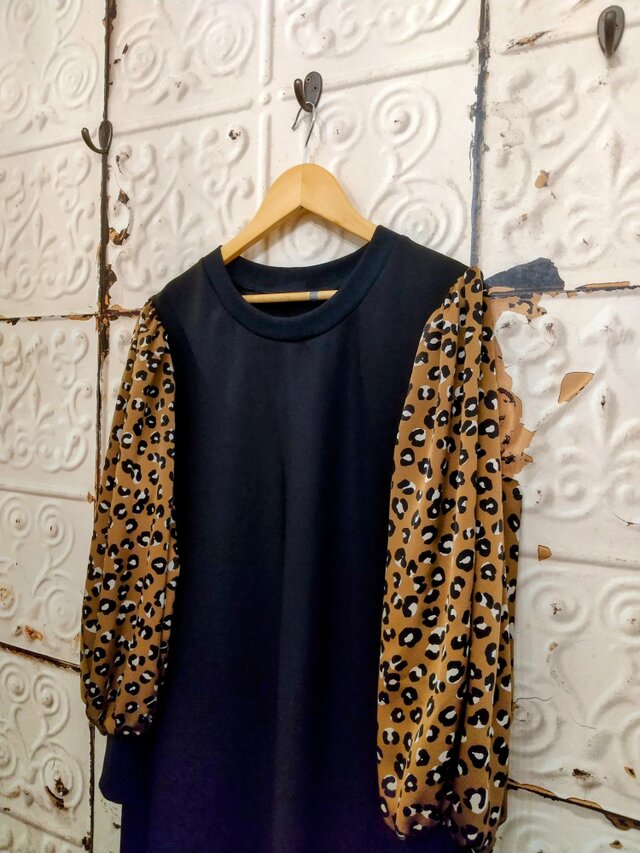 レオパード柄お袖パフスリーブのブラックワンピース(ブラウン)