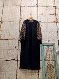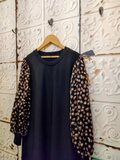 レオパード柄お袖パフスリーブのブラックワンピース(ブラック)
