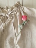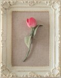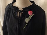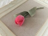 赤に近い濃いピンクのチューリップコサージュ。