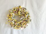 輝くようなイエローのミモザを沢山あしらったリースです。