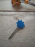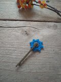 ブルーカラーのレース糸で編んで制作したヘアピンです。