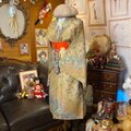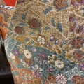 【着物リメイク ワンピース ドレス 洗える 化繊 名古屋帯サッシュベルト 和洋折衷 レトロ 古着 ハンドメイド まるでアンティークの絵画のような色彩の美しさが際立つ一着。 KW-865】