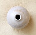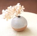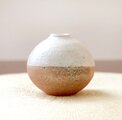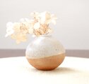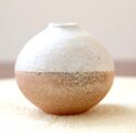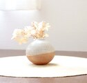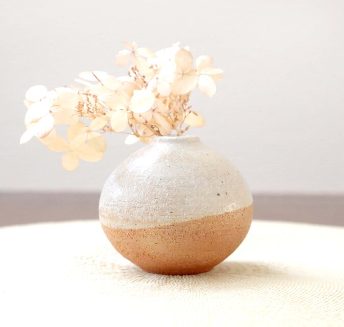 土物らしさを感じられる荒めの白陶土と、あたたかで素朴な質感の藁灰釉を使用して制作した、ふっくらと柔らかなフォルムの一輪挿しです。