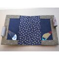 異なる生地を組み合わせ、猫のシルエットが浮かび上がるように仕立てました。手仕事ならではの温かみと、日本の伝統技術の精巧さを感じられる一品です。