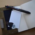 厚さ調整はできませんが、カバーがしっかりしているため、「ほぼ日手帳オリジナル(A6)」より少し小さめの手帳にも装着可能。