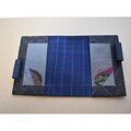 異なる生地を組み合わせ、猫のシルエットが浮かび上がるように仕立てました。手仕事ならではの温かみと、日本の伝統技術の精巧さを感じられる一品です。