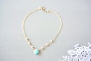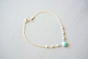 SALE)14kgf*スリーピングビューティーターコイズ(マロンカット)×淡水パールのブレスレットのコピー