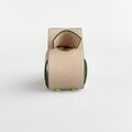 タンニンなめしのヌメ革をベージュとライムに染めあげ、グリーンの縁取りを添えて仕上げました。