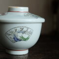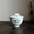 松竹梅の絵付け◆久谷焼 赤絵金彩蓋付蒸茶碗 暮らしに 和食器 古民家 工芸品 昭和期