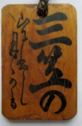 全体の長さは37センチ程度で木札の大きさは、縦7,5センチ、幅5センチ、厚さ5センチほどです。