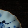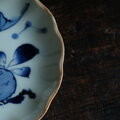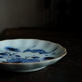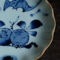 蝙蝠と果実◆伊万里 蝙蝠文染付中皿 骨董/antiques丁寧な暮らし 江戸末期【縁に欠け】B