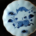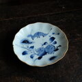 蝙蝠と果実◆伊万里 蝙蝠文染付中皿 骨董/antiques丁寧な暮らし 江戸末期 【アマテ/縁にアタリ】C