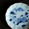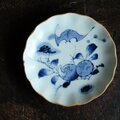 蝙蝠と果実◆伊万里 蝙蝠文染付中皿 骨董/antiques丁寧な暮らし 江戸末期 【縁にアタリ】D