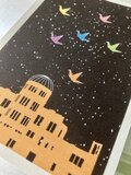 昨日いただいておりましたのに、到着とお礼のメッセージをお送りするのがおそくなってしまい申しあけありませんでした。 明快なコントラストの色使い構図に、神の使いのような動物がしのんでいて、ドラマティックな作品だと思いました。ありがとうございます。