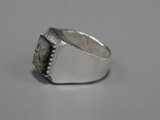 リングのサイズは13号、重さは18g、最大幅は17mm、金属部分は純銀です。