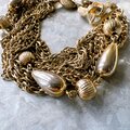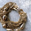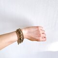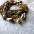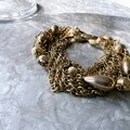 メタルビーズが中央に、2種類の全8本のチェーンが連なるチャンキーなブレスレット。