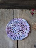 ホワイトやパープルのミックスカラーのレース糸で編んで制作致しました。