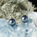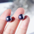 大粒★極上の照り、ピーコックブラック貝パール10mmのスタッドピアス・イヤリング可 ~黒揚羽