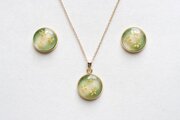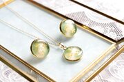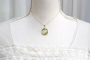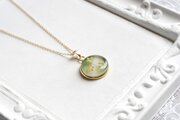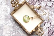 緑と白の背景に、金色のお花を咲かせたペンダント。