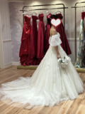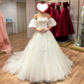 実例写真!パフスリーブ オフホワイト ソフトチュール ストレッチ 色直し ウェディング 前撮り