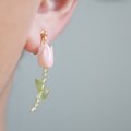 【ピアス/イヤリング】チューリップ クィーンコンクシェル ペリドット 天然石 誕生石 春 花 シンプル 14kgf
