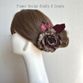 フラメンコ・袴飾り・結婚式に♡ブロンズのベロアの薔薇の髪飾り 成人式 着物 髪飾り ブラウン ベロア ボルドー 薔薇 バラ 茶色