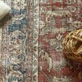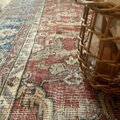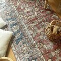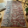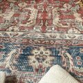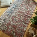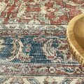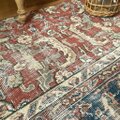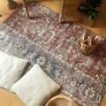 86×150 赤えんじ×ブルー 擦れシャビーなボタニカル トルコヴィンテージラグ