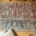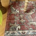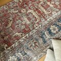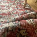 ヴィンテージラグは古い手織物のため使用感や糸のほつれ、補修跡、補強跡、ヨレやシミ、色むら、穴あき、毛羽立ちなども見られる場合がございます。ヴィンテージラグの魅力としてご理解いただき、良いと思える方にご購入いただけると幸いです。