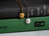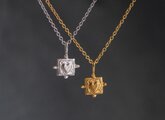 優しいゴールド色で上品な作品です。 五角形の非対称なデザインも素敵です。