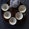 有田焼 草山窯 1客 染付独楽筋平湯吞み茶碗 小鉢 yk263