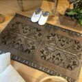 60×101 ブラウン×グレイ リーフボタニカル トルコヴィンテージラグ