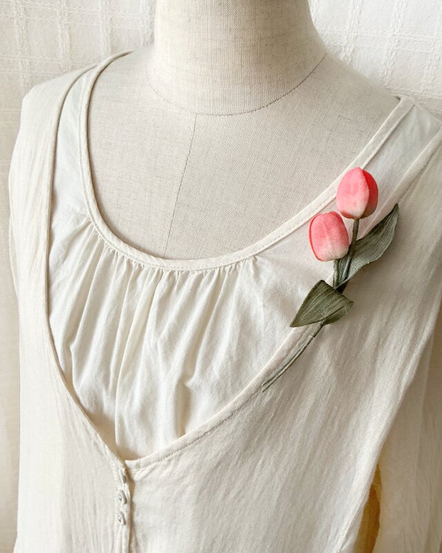 小さいサイズのチューリップを2輪まとめたコサージュ。