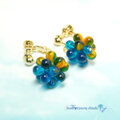 ドロップビーズボールイヤリング*ブルー×マンダリン