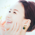 2色のドロップが集まったビーズボールがコロンと揺れるイヤリングです。