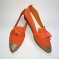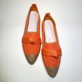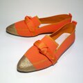 ノットが目を引くバイカラーフラットニットパンプス (オレンジ x ゴールド他) 軽くて楽ちん 1cmヒール