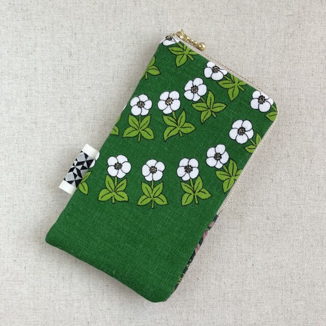 スマホポーチ メガネケース ペンケース グリーンの花柄