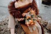 実例写真!カラードレス+トップス ブラウン オフショルダー マーメイドライン クレープ生地 前撮り